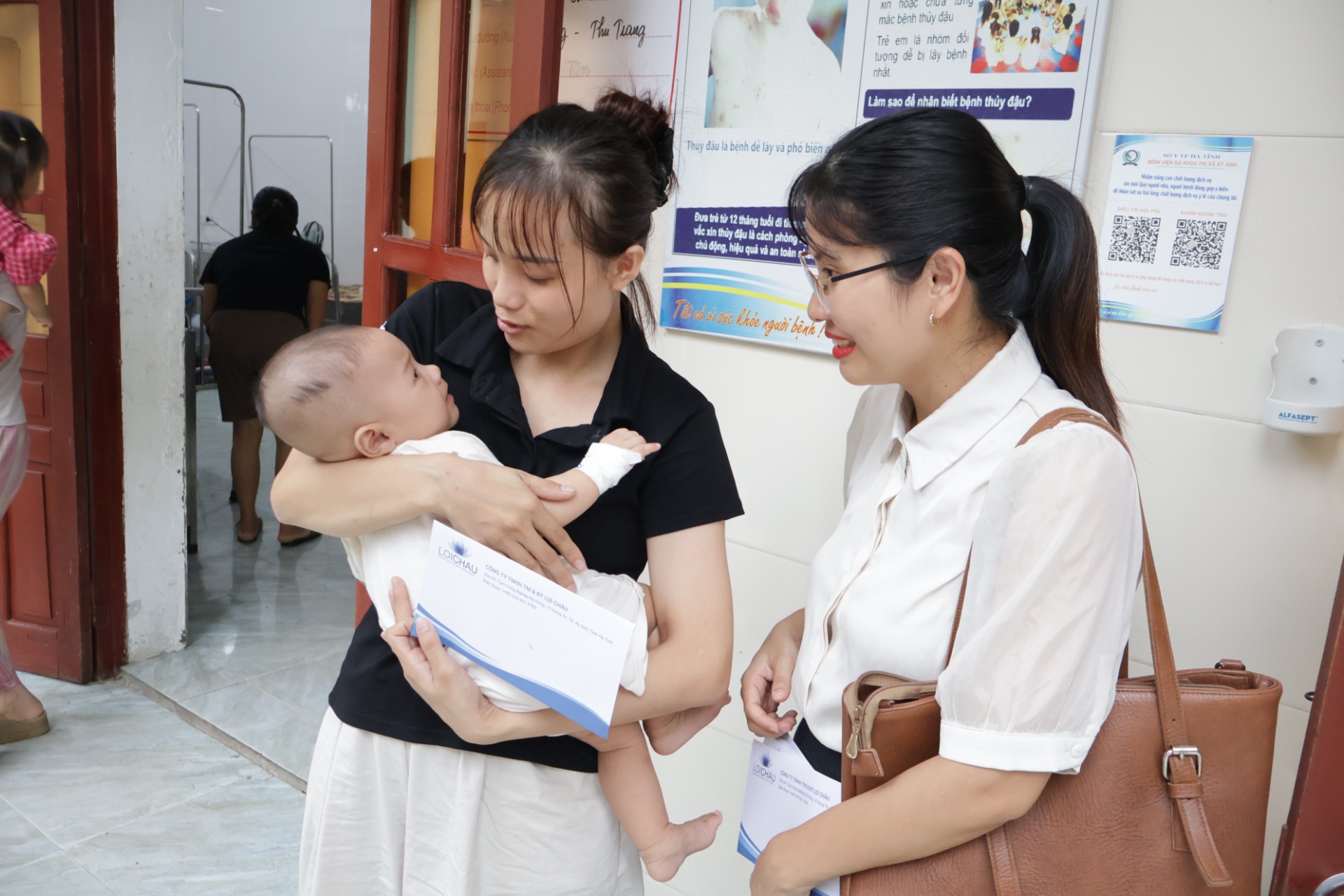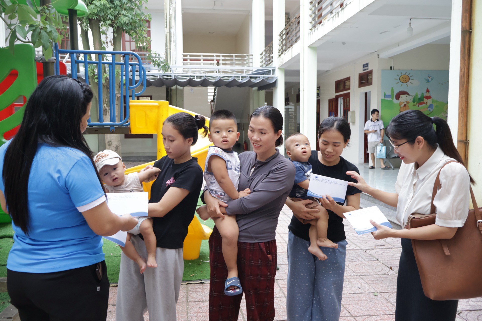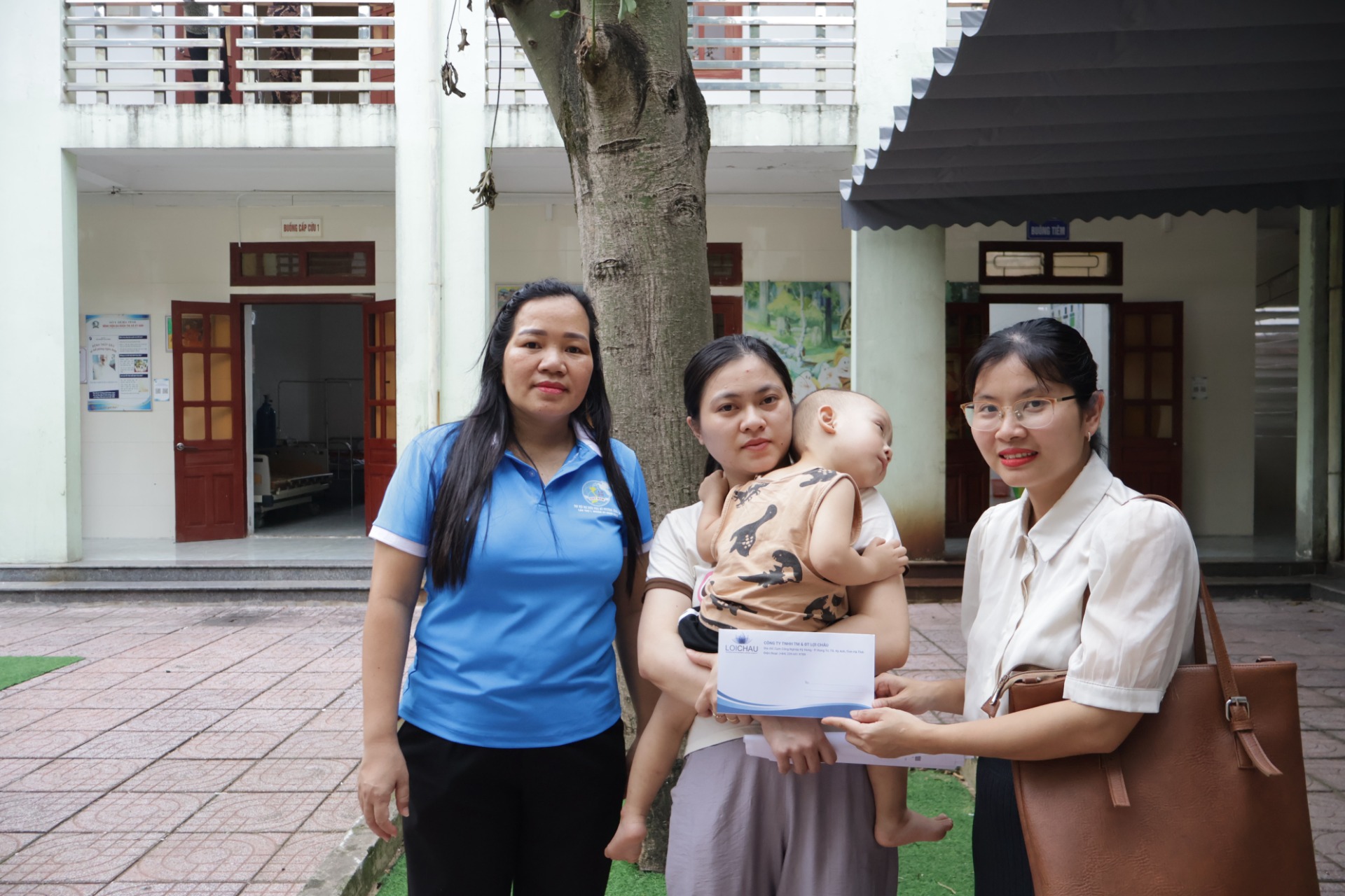 Không chỉ trao tặng vật chất, các thành viên của công ty còn dành thời gian hỏi thăm sức khỏe, động viên tinh thần từng bệnh nhi và gia đình.