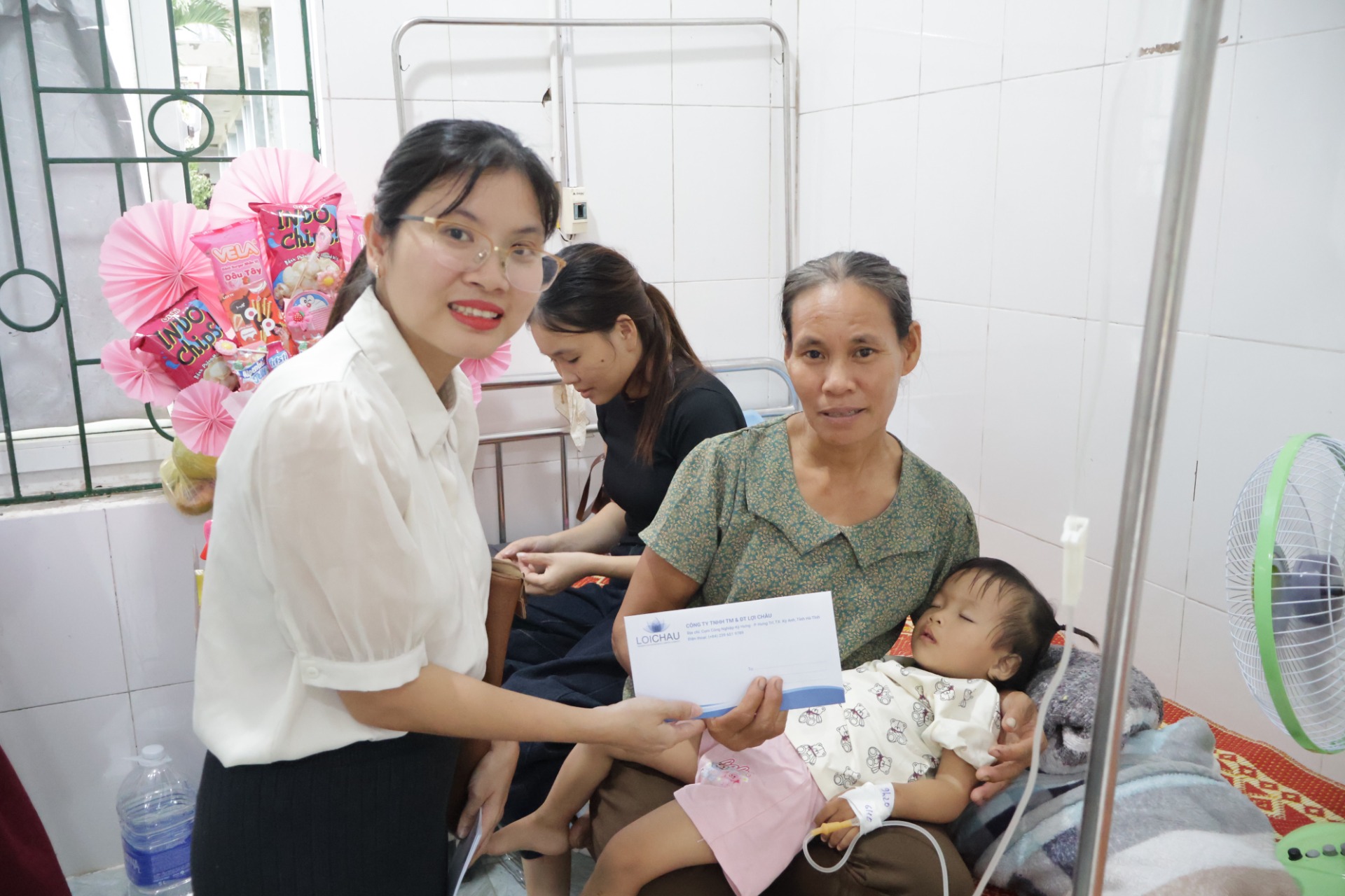 Thấu hiểu điều đó, Công ty TNHH Thương mại và Đầu tư Lợi Châu ( CCN Kỳ Hưng ) đã mang những món quà nhỏ nhưng đầy ý nghĩa đến với các em – những bệnh nhi đang điều trị tại bệnh viện.