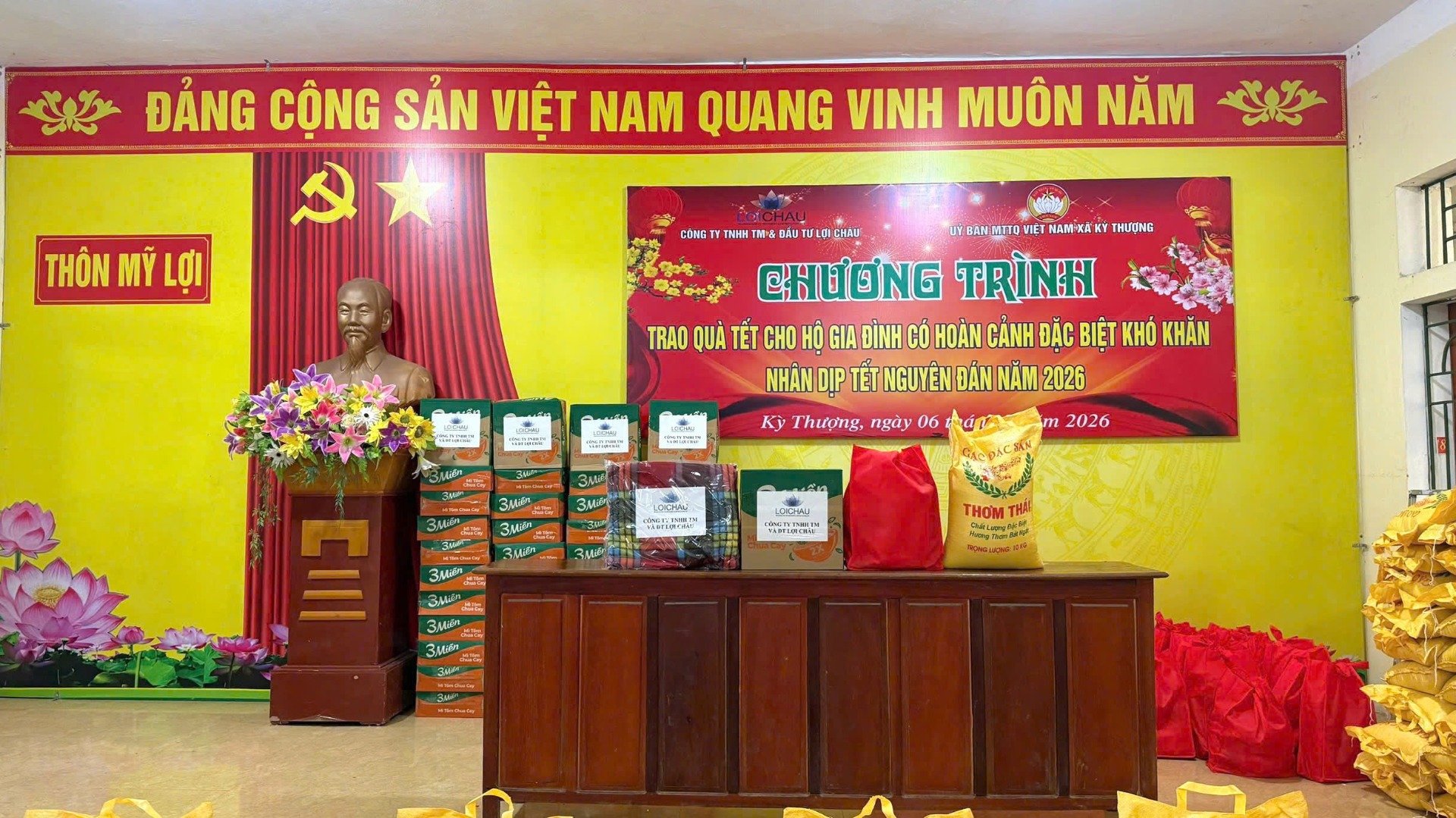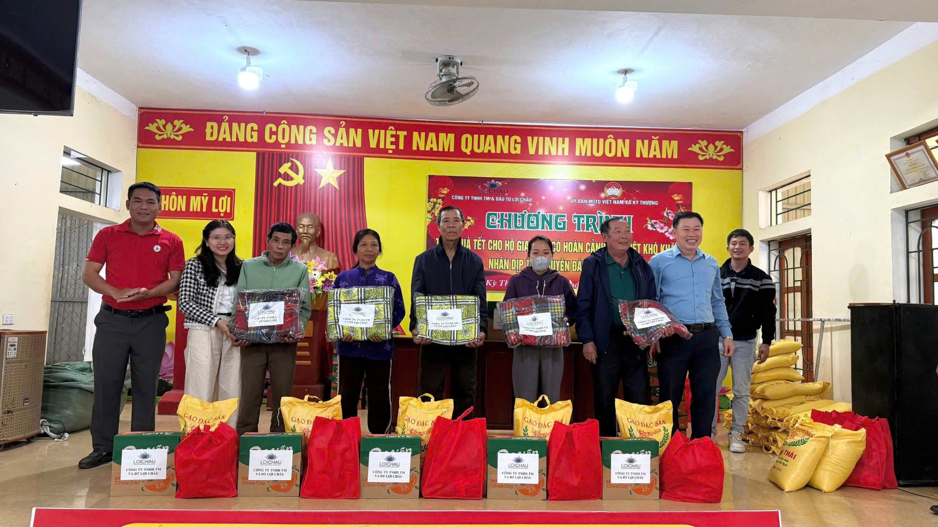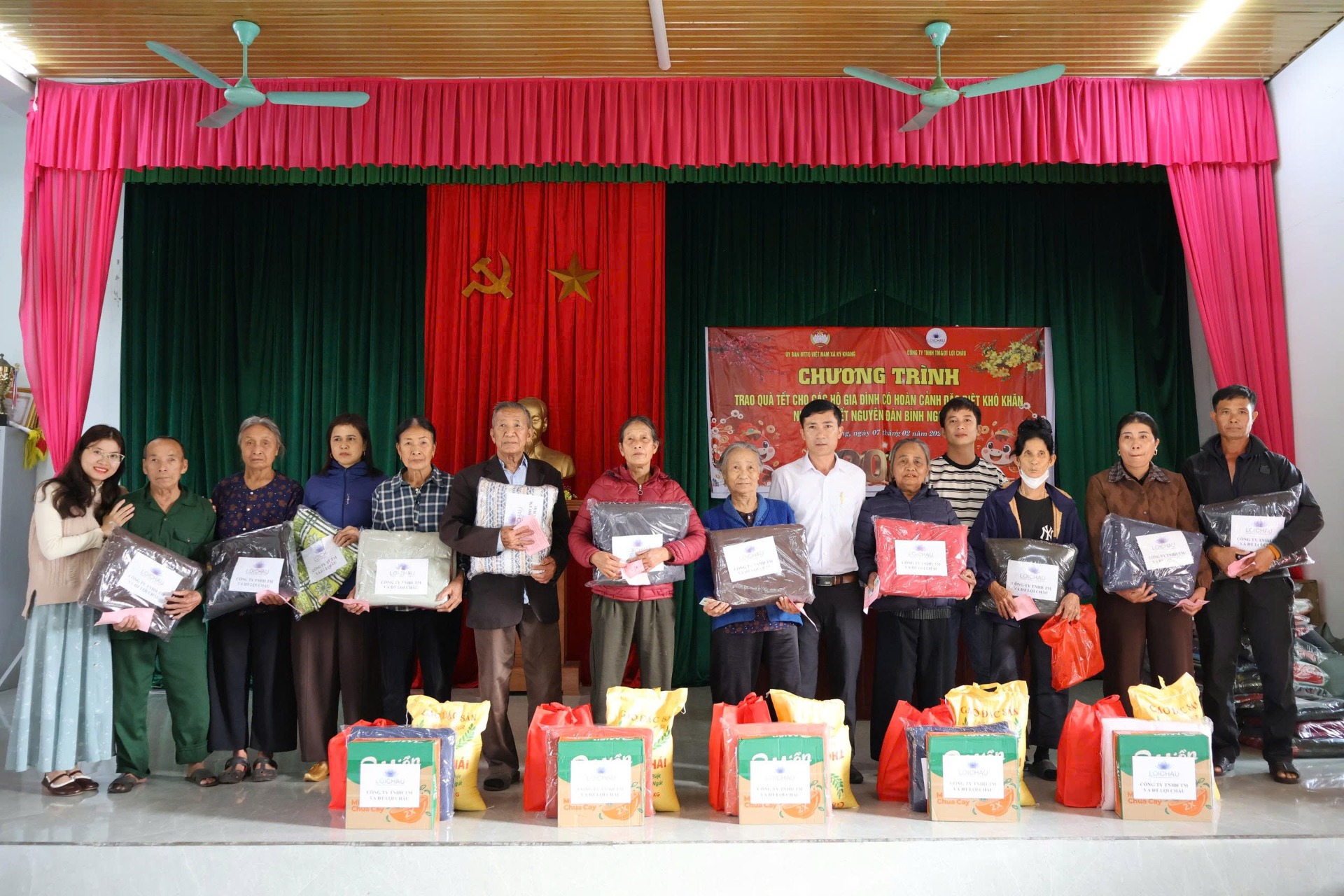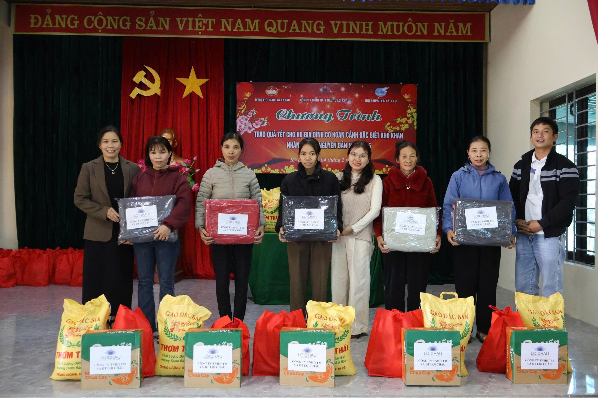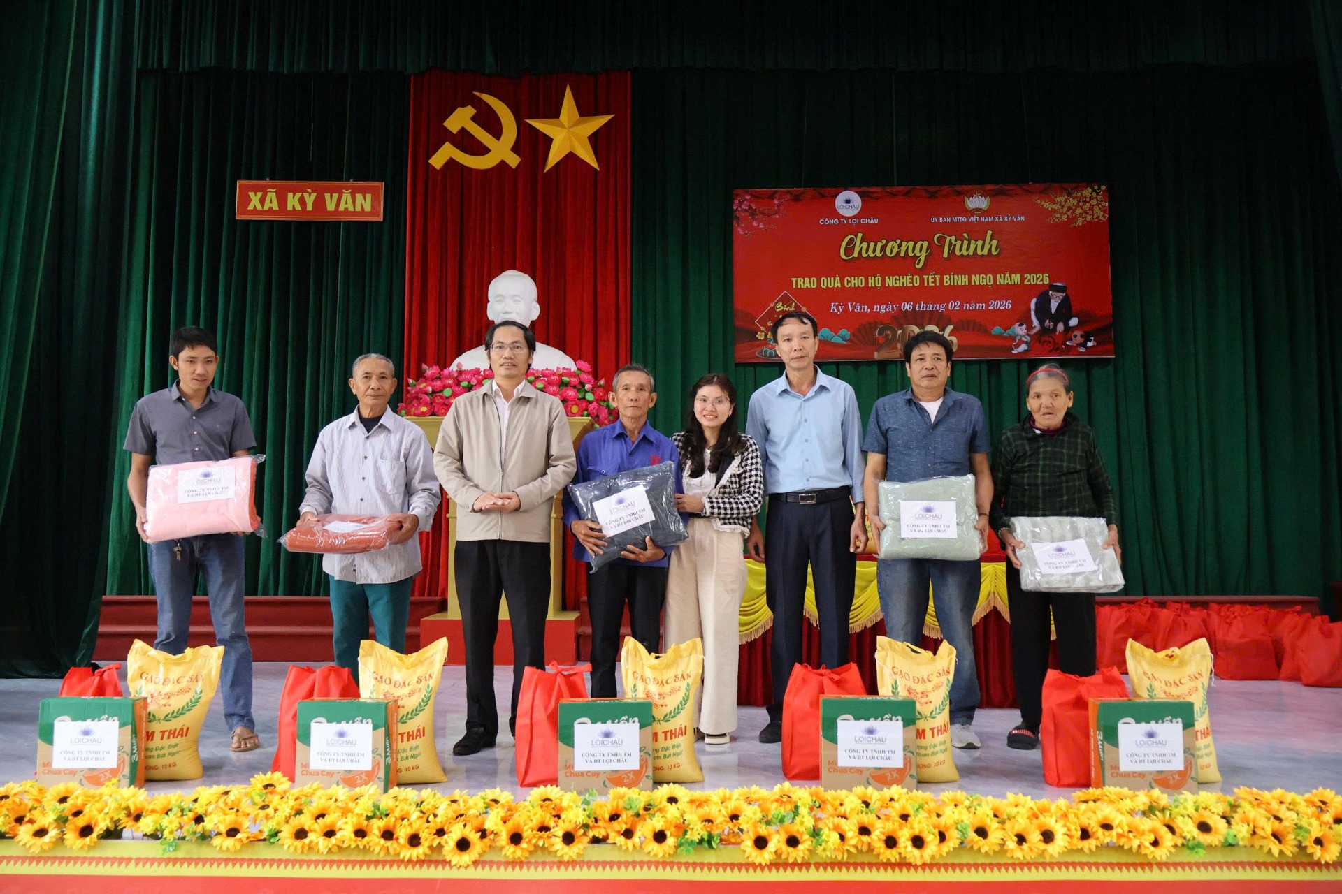 Nhân dịp Tết Nguyên đán Bính Ngọ 2026, Công ty TNHH Thương mại và Đầu tư Lợi Châu đã kết hợp với Ủy ban mặt trận Tổ quốc các xã tổ chức chương trình trao quà Tết cho 256 hộ gia đình có hoàn cảnh khó khăn tại 5 xã: Kỳ Văn, Kỳ Khang, Kỳ Thượng, Kỳ Lạc và Kỳ Hoa, góp phần sẻ chia khó khăn và lan tỏa tinh thần tương thân tương ái trong cộng đồng.