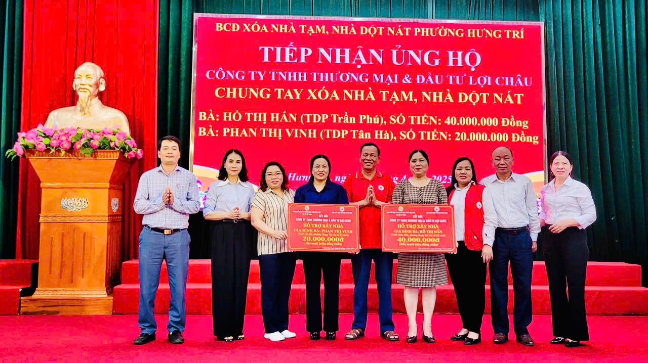 Hưởng ứng phong trào "Cả nước chung tay xóa nhà tạm, nhà dột nát", Hội Chữ thập đỏ thị xã Kỳ Anh đã phối hợp với Bà Liêu Quân Nghi - Giám đốc Công ty TNHH Thương Mại và Đầu tư Lợi Châu trao hổ trợ cho 5 gia đình có hoàn cảnh khó khăn trên địa bàn Kỳ Hoa, phường Hưng Trí, Kỳ Thinh với tổng giá trị 120.000.000. Đây là Chương trình hết sức ý nghĩa, động viên, giúp đỡ các hộ gia đình có được mái ấm kiên cố, vững chãi, yên tâm ổn định cuộc sống.